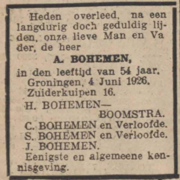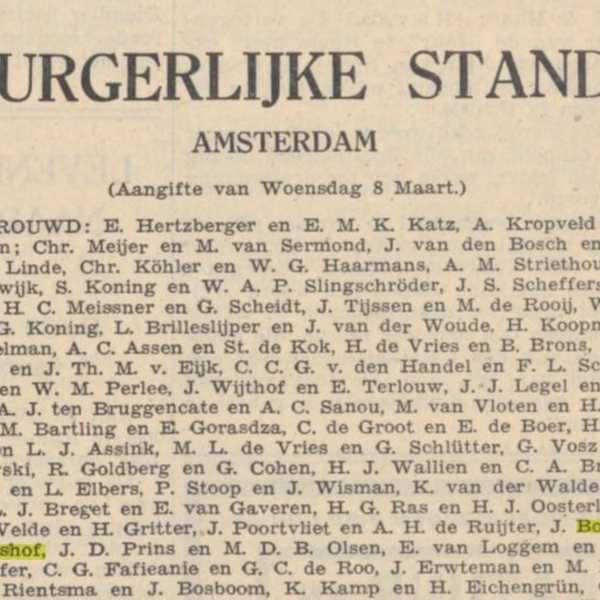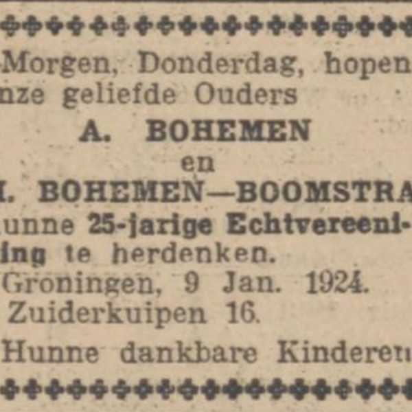 Op 8 maart 1939 trouwt Jo Bohemen in Amsterdam met Bloemina Elshof uit Groningen, en in april beginnen ze een filiaal van 'De Zwitsersche' op het adres Bilderdijkstraat 143. Ze wonen achter de winkel. Ook Jo's moeder, de weduwe Hindera Bohemen-Boomstra, verruilt dat jaar Groningen voor Amsterdam. Ze woont eerst een paar maanden in bij Jo en Bloemina en betrekt dan een huis in de Kinkerstraat. Gezellig dichtbij.