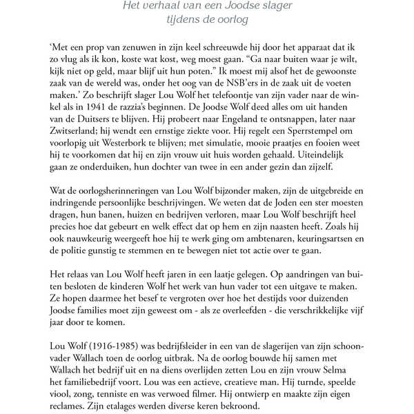Hoe de oorlog werd overleefd legde onze vader Lou Wolf vast in een drietal schriften, nauwelijks te lezen zo klein geschreven. Pas vele jaren na de oorlog werden de verhalen ontcijferd en nu in 2023 is de tekst als het boek "Ontsnapt aan het moffentuig" beschikbaar vanaf 4 mei 2023. Daarin staat ook hoe Aäron en Bennette Wolf hebben geprobeerd om uit de handen van de nazi's te blijven. Uiteindelijk is dat niet gelukt. Ze werden beiden op 20 maart 1943 bij aankomst in Sobibor op de grens van Polen, Oekraïne en Wit-Rusland vermoord.