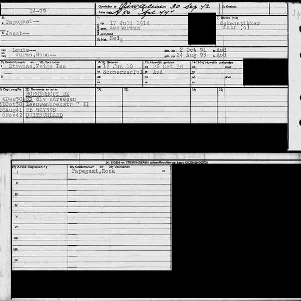 De zwager van Jacob werd al bij de eerste razzia in Amsterdam opgepakt en afgevoerd naar Auschwitz. Zusje Mietje bleef hoogzwanger achter en hertrouwde. Het hele gezin werd een jaar later op 2 juli 1943 vermoord in Sobibor.