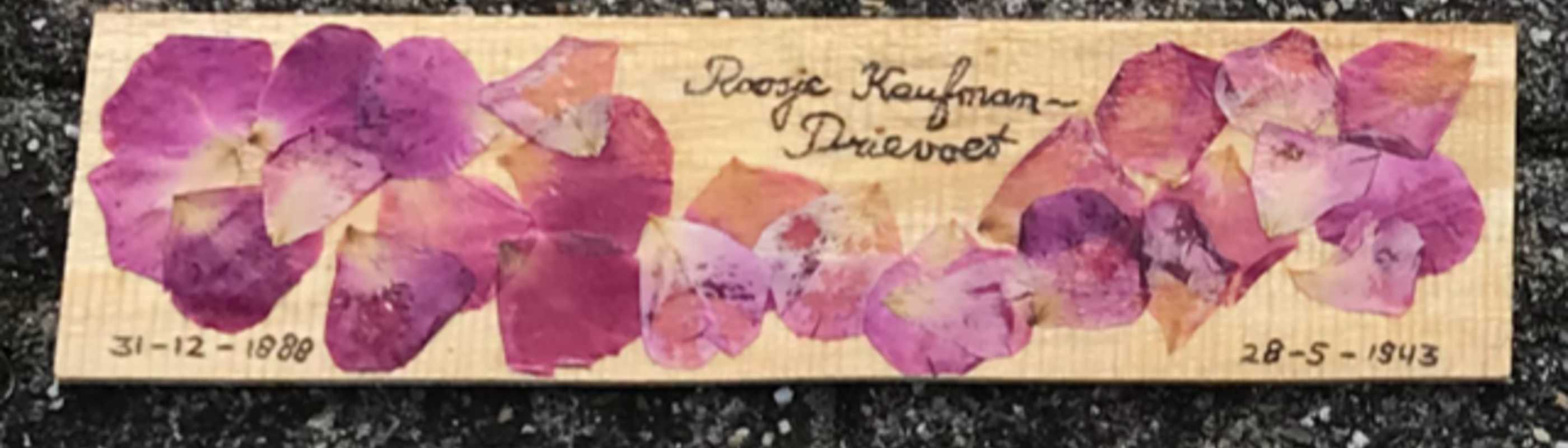 Roosje Drievoet werd geboren in 1888. Zij overleed in Sobibor op de leeftijd van 54 jaar. Haar man Samuel Kaufman overleed een jaar eerder dan Roosje. Roosje had een jongere broer en zus die ook zijn overleden in respectievelijk Auschwitz en Sobibor.