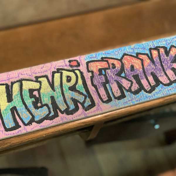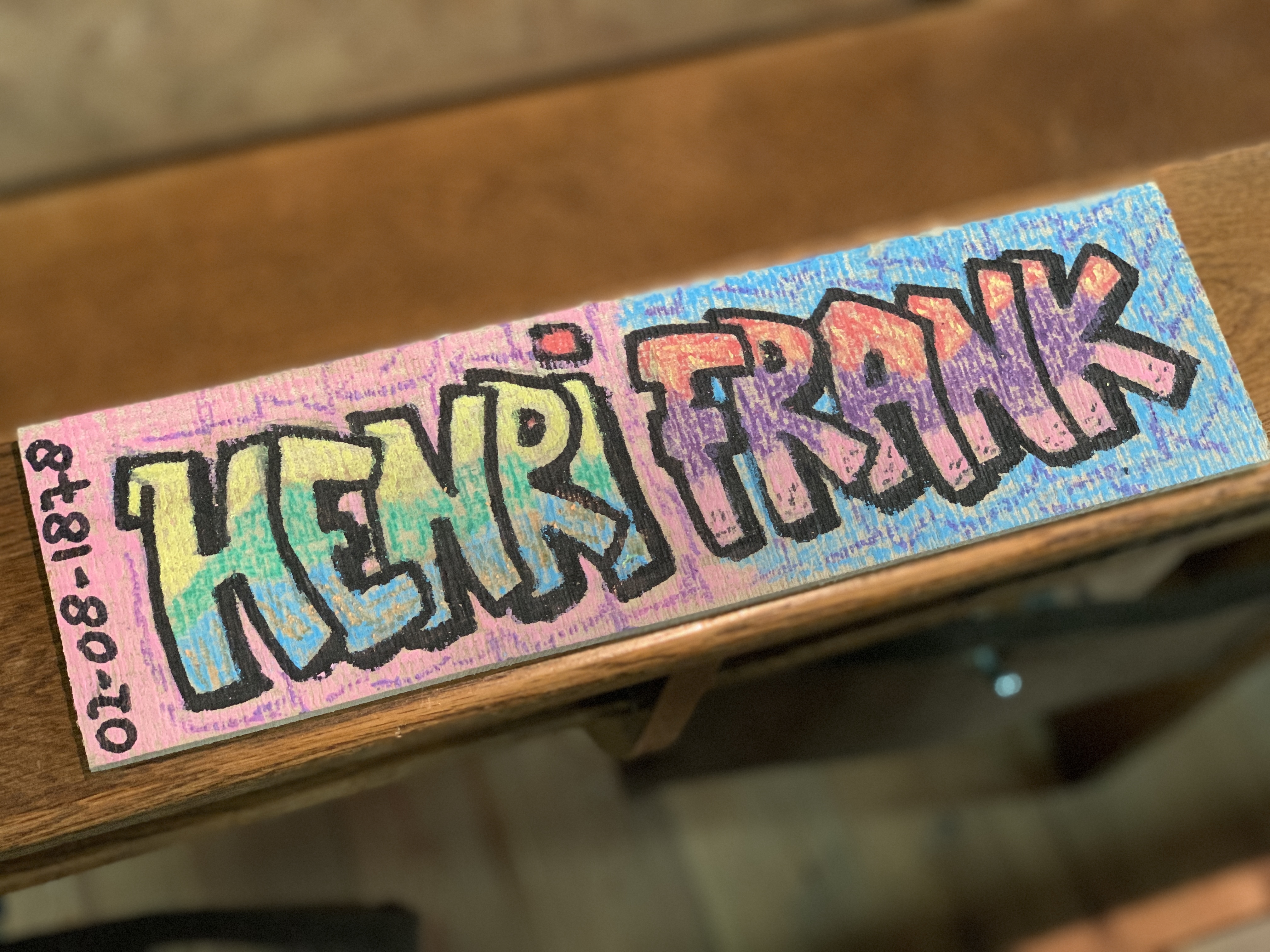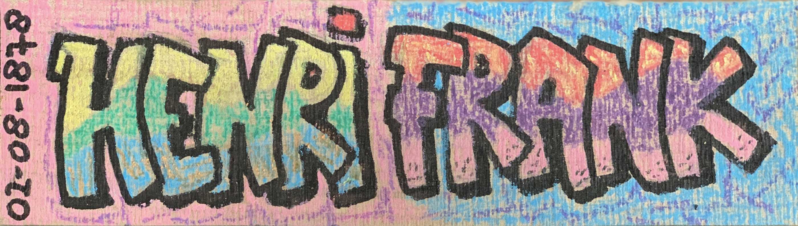 Er lag een stapel A4-tjes met namen en verhalen van de te herdenken personen. Bij Henri Frank stond weinig geschreven. Ik wilde daarom mijn aandacht aan deze persoon geven. In tegenstelling tot zijn verdrietige verhaal heb ik een kleurrijk naambordje gemaakt. Om zijn naam naar de 21e eeuw binnen te brengen, heb ik graffiti letters gebruikt.