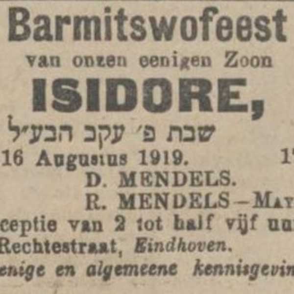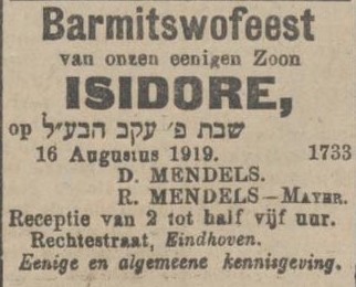 Hieronder twee familieberichten uit het Nieuw Israelietiesch Weekblad (uit 1905 en 1919) en twee advertenties uit het Eindhovensch Dagblad (23 mei 1924 en en 25 maart 1927).
