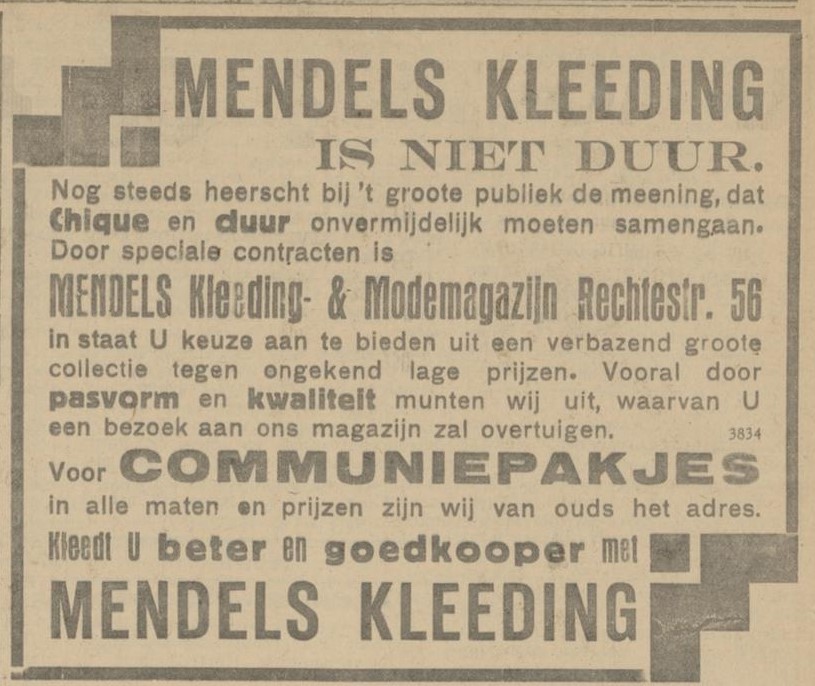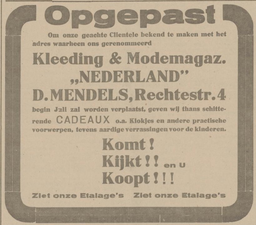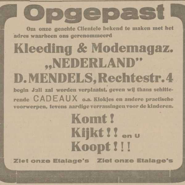 David, geboren in Almelo en opgegroeid in Groningen, had zich in 1901 in Eindhoven gevestigd. Kort voor het huwelijk was hij een manufacturenzaak begonnen in de Rechtestraat, destijds de belangrijkste straat van Eindhoven. Zijn winkel annex woonhuis bevond zich pal naast de stadsvilla van de burgemeester. Ruim vijfentwintig jaar heeft het echtpaar de winkel gehad. Wel op drie verschillende adressen, in steeds grotere en luxere panden die helaas inmiddels allemaal gesloopt zijn. Regelmatig plaatste David creatieve advertenties in het Eindhovensch Dagblad, waarvan ik er twee heb uitgekozen.