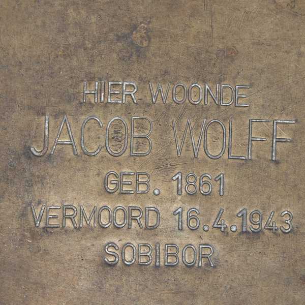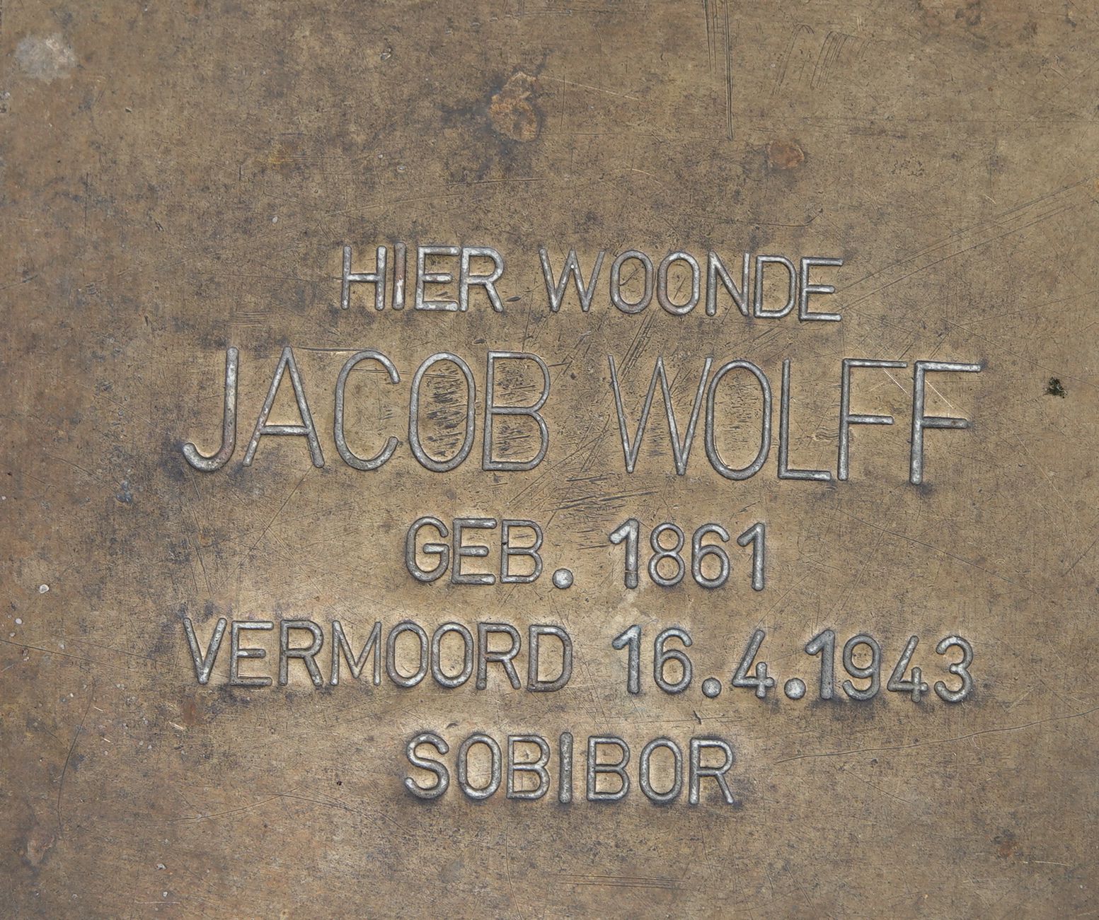 In de Verwersstraat in Den Bosch staat een groot oud middeleeuws pand. In de oorlog woonden er drie gezinnen, waaronder dat van Jacob Wolff. Hij is in 1861 in Boxmeer geboren als zoon van Theodor Wolff en Johanna Lion. Zij verhuisden naar Den Ham. Daar zal Jacob zijn vrouw Bet Schlosser ontmoet hebben. Ze trouwden in 1896 Waarschijnlijk was zij toen al overleden en heeft ze het . Twee jaar later werd zoon Gompert geboren. In 1937 woonde Jacob in Den Bosch. Zijn vrouw wordt dan niet vermeld. Waarschijnlijk was zij toen al overleden en heeft ze de Jodenvervolging niet mee hoeven maken. Het is niet duidelijk of Jacob, zijn zoon Gompert Wolff en schoondochter Sophia van der Veen, toen al in de Verwersstraat woonden. Tijdens de oorlog in ieder geval wel. Vermoedelijk woonden ze op de begane grond in het achterhuis. Voor aan de straat was een winkel met aangrenzend het dagverblijf van de winkel en de woning. In het achtergedeelte was een kamer boven de kelder. Daarnaast liep een gang naar de binnenplaats waar een los achterhuisje stond met een keuken met toilet. Het was er vrij krap. Waarschijnlijk verhuisde (schoon)vader Jacob, toen hij 80 jaar was, daarom naar het rusthuis Achter het Stadhuis. De familie is in de oorlog gedeporteerd en nooit teruggekomen. Nu woon ik in het pand.
