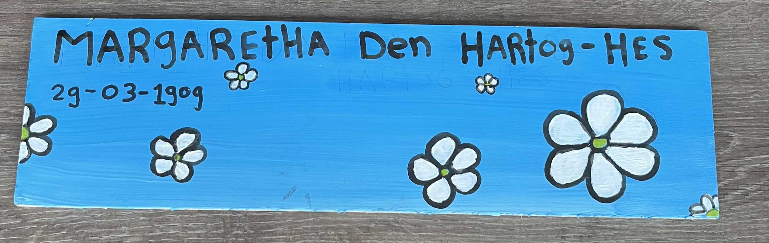 Margaretha de Hartog-Hes is op 29 maart 1909 geboren in Veghel. Margaretha's vader heette David Nathan-Hes, haar moeder heette Elisabeth Monnickendam. Ze had nog 2 broers of zussen. Haar zus heette Estella en haar andere broer/zus is onbekend. Hij/zij heeft de oorlog wel overleefd. Na haar huwelijk met haar vriend, Simon, is ze naar Oss verhuisd op 31 juli 1926. Ze woonde aan de kruisstraat 89. Ze hadden 2 kinderen die de oorlog hebben overleefd. Hun namen zijn onbekend. Naast hun kinderen hadden ze nog andere mensen in hun huis: Johanna Snijders van Driel-Kaufman, Albert Eduard Snijders van Driel en Max Leon Snijders van Driel. Dit was een gezin van een moeder, vader en een zoon. Ze verbleven op de kruisstraat omdat het joodse gezin waarschijnlijk in gevaar was door de nazi-bezetting. Hun zijn in 1943 vermoord.