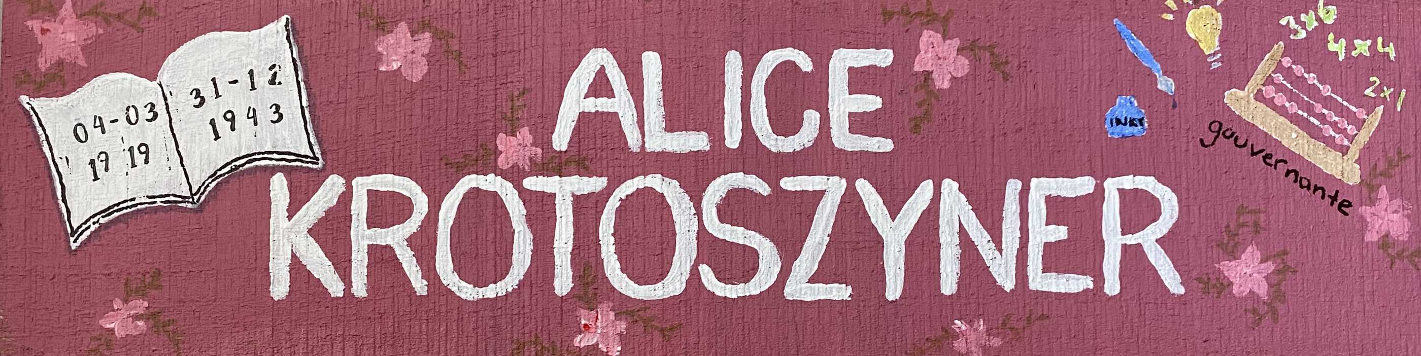 Alice Krotoszyner werd op 04 maart 1919 geboren in Amsterdam in de Jacob Obrechtstraat 92. Met haar komst verblijdde zij haar vader Jacob (Jean) Krotoszyner (1876, Breslau), en haar moeder Wally Krotoszyner-Schirokauer (1884, Peitz). Haar vader was reiziger, naar verluidt van zijn registratie in de gemeente Amsterdam en van moeder is geen beroep geregistreerd.