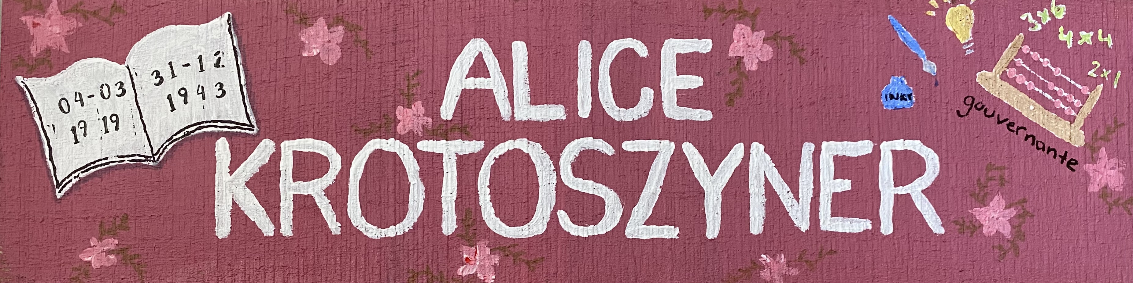 Kort na de geboorte van Alice verhuisde het gezin op 29 mei 1920 naar Brussel. Hier verwelkomde het gezin Henri Krotoszyner, negen jaar na de geboorte van Alice op 29 juni 1910. Alice werkte als gourvernante.