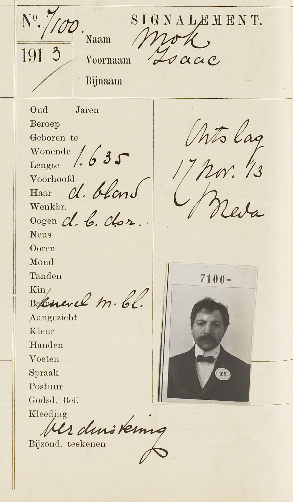 En… er zijn de nodige processen-verbaal van de politie. Isaac heeft twee keer in de gevangenis gezeten vanwege oplichting, verduistering en/of heling. Als hij in augustus 1942 wordt gedeporteerd naar Kamp Westerbork en Sobibor, is dat vanuit de koepelgevangenis. Hij is de enige Jood daar. Of er ook niet-Joodse medegevangenen weggevoerd zijn, heb ik niet kunnen achterhalen.