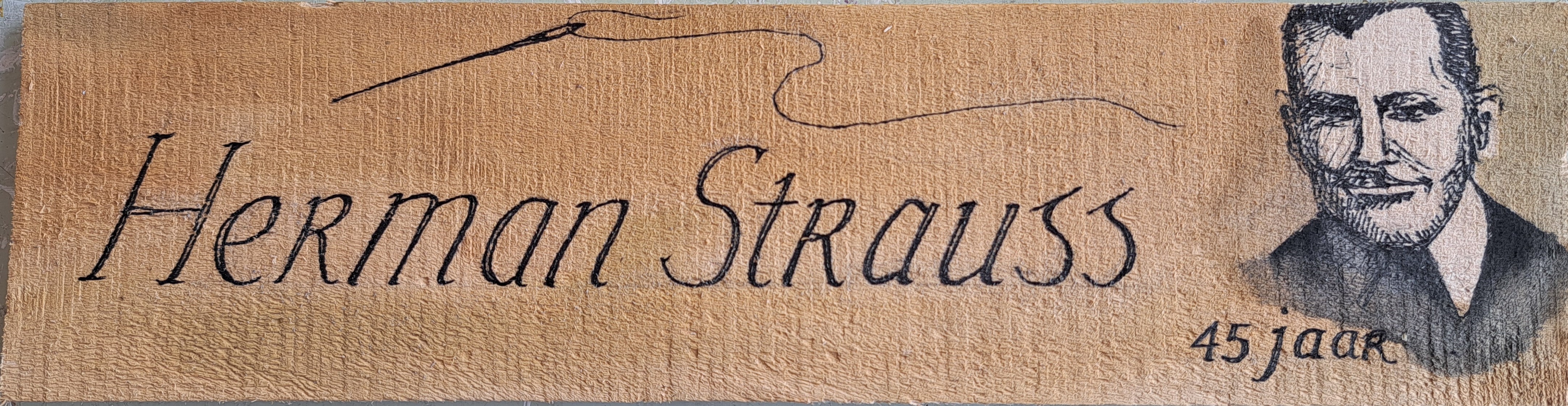 Voor Herman maakte ik een bordje met zijn portret en een naald en draad, als symbool voor zijn beroep maar ook voor zijn leven, dat werd afgebroken en als los eindje in de geschiedenis blijft hangen.