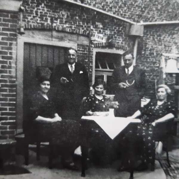 Foto heemkundekring Waspik: Het gezin de Jong, zittend Leentje, Rosetta en Eva, staand Abraham en Andries.