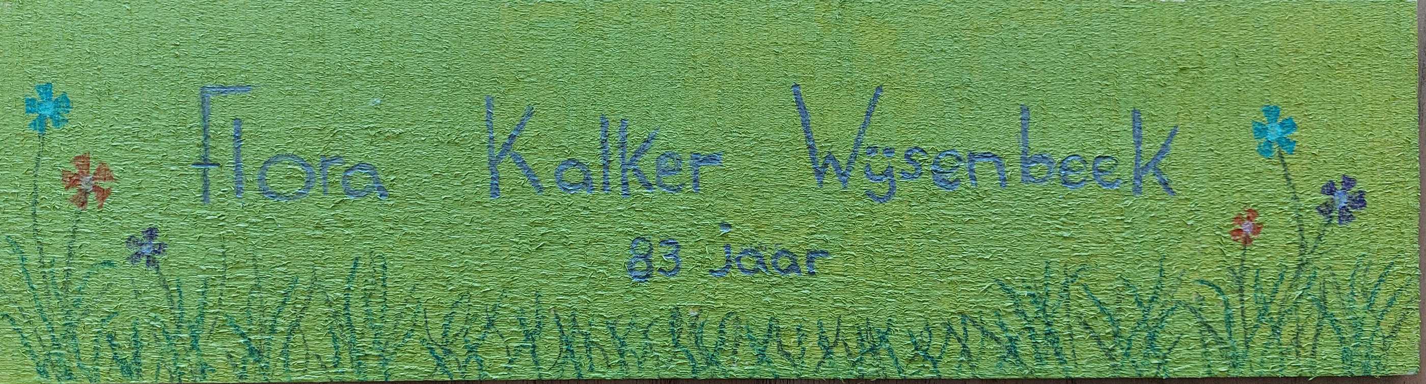 Flora Kalker-Wijsenbeek was getrouwd met Salomon Kalker. Het echtpaar woonde met hun drie kinderen op Markt 37 in Geertruidenberg. De zieke Flora Kalker-Wijsenbeek bezweek op 2 mei 1943 in het concentratiekamp Vught. Drie weken na haar aankomst in dat kamp. Ze overleed onder barre omstandigheden, maar hierdoor werd haar wel een verschrikkelijke reis in een goederen- of veewagon naar Sobibór bespaard.