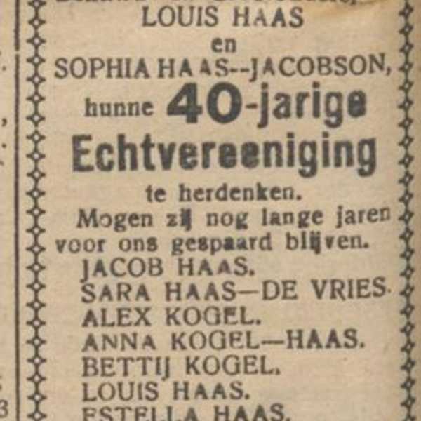 In 1922 plaatsen de kinderen een advertentie ter gelegenheid van het 40-jarig huwelijk van hun geliefde ouders. Op 15 februari 1931 wordt Louis 75 jaar. Sara en Louis zijn op die dag 49 jaar getrouwd. Enkele weken later overlijdt Sophia. Ze wordt begraven op de Joodse begraafplaats in Oosterhout.