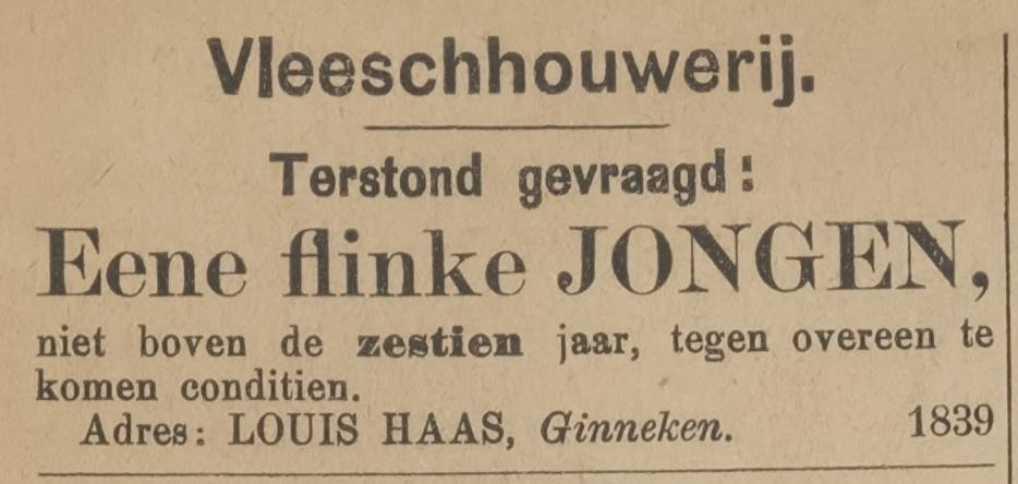 In 1897 verhuist het gezin naar Ginneken: Louis krijgt daar een slagerij aan het Oranjeplein. Hij wordt in 1913 secretaris van Bikkoer Gouliem, een vereniging die attenties verzorgt voor Joodse zieken en die arme Joodse gezinnen ondersteunt met levensmiddelen en brandstof.