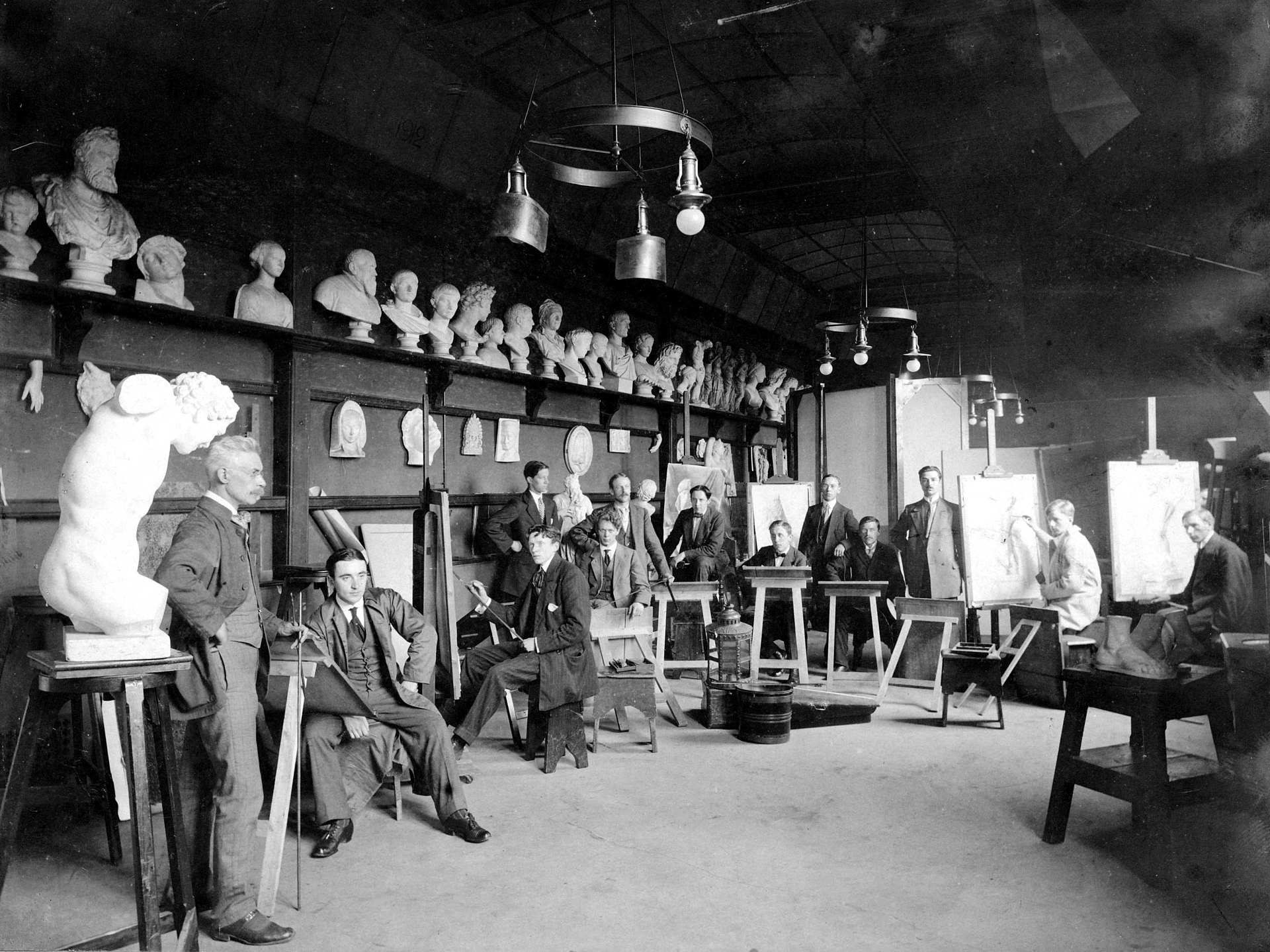 Rijksschool voor Kunstnijverheid op bovenverdieping Rijksmuseum, c. 1900