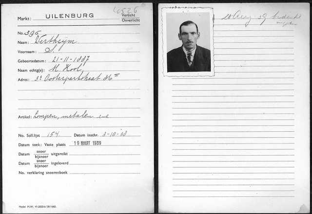 Voorkant kaart uit Cartotheek Joodsche Raad over Levie Wertheijm: