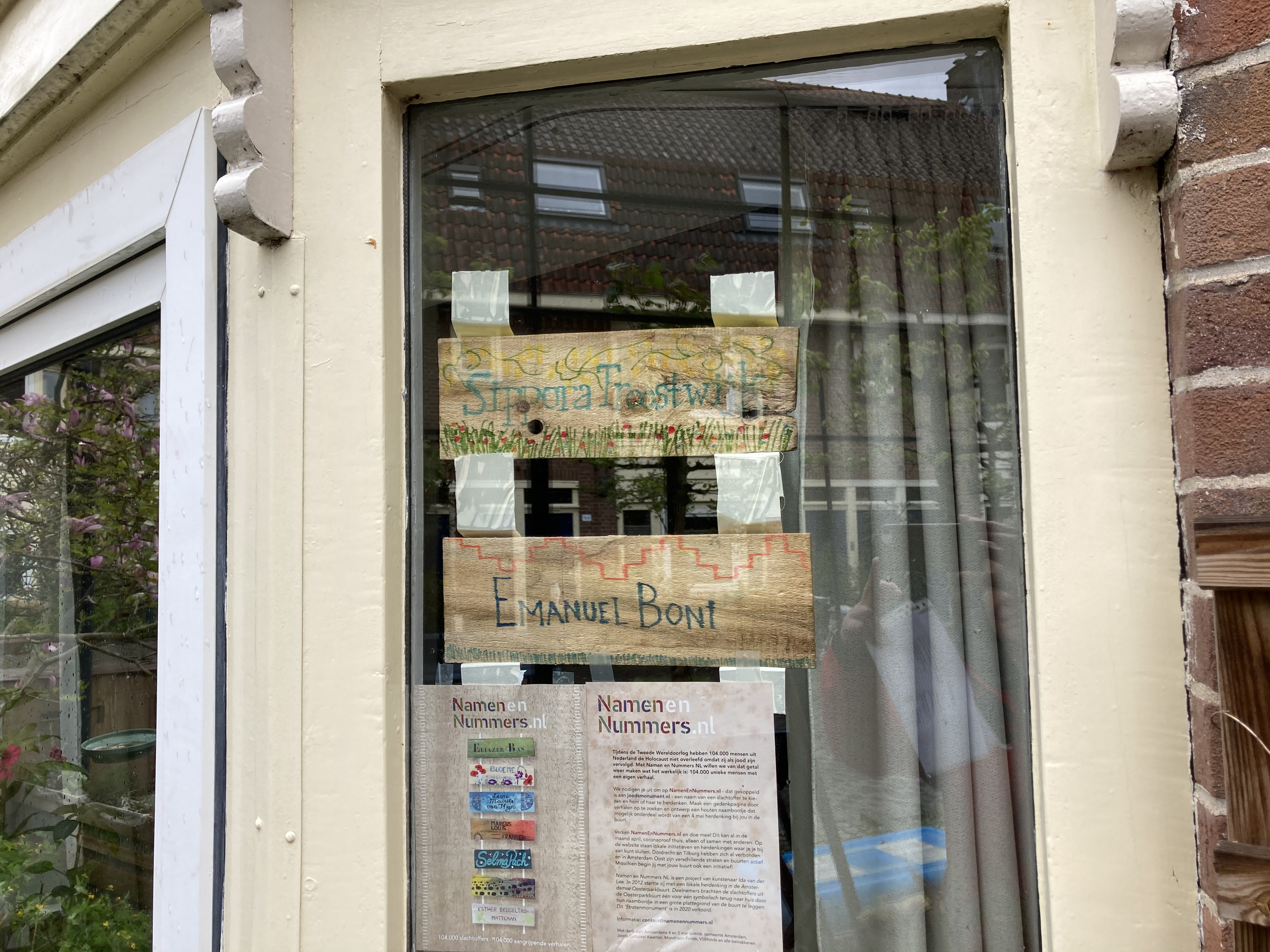 Juan heeft het naambordje gemaakt. Hij schrijft: In 2020 kwamen wij voor het eerst in aanraking met het door Ida van der Lee ontworpen ritueel om Joodse bewoners die waren weggevoerd weer 'naar het licht te brengen': op de plek waar ze thuishoren, hun eigen huis. Zeer dankbaar dat we dit kleine gebaar kunnen maken.