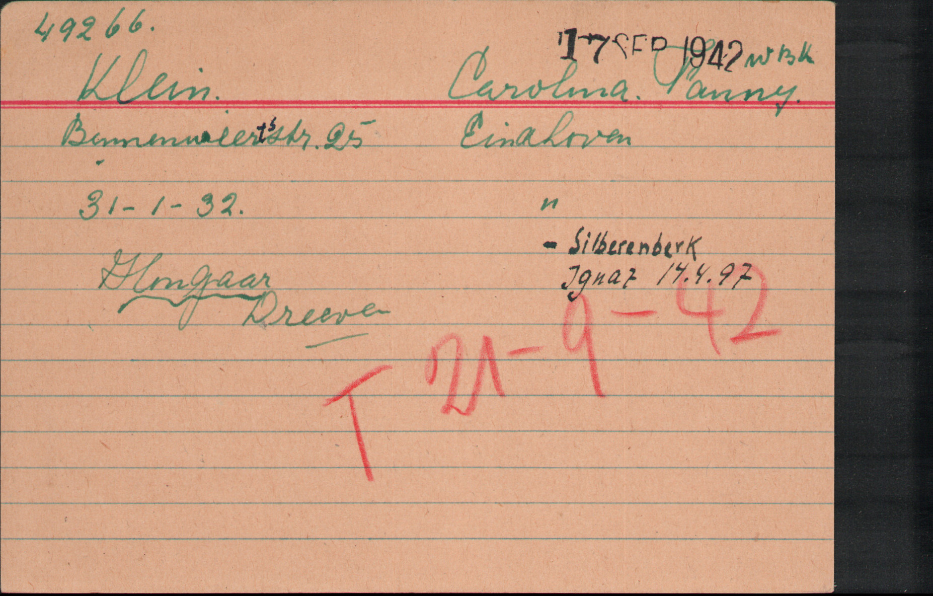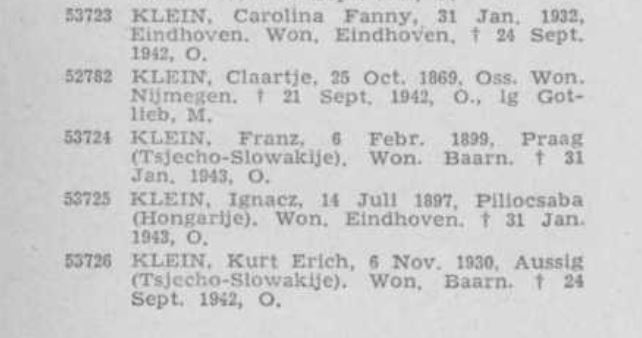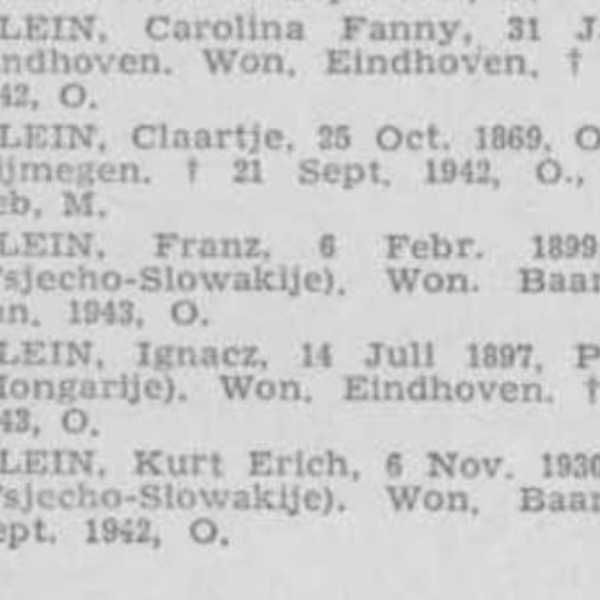 Je bent geboren op 31 januari 1932 in Eindhoven. Je ouders zijn Ignacz Klein en Julia Klein-Silverenberg. Je hebt een 5 jaar oudere broer Mör en een 3 jaar jonger broertje Mauritz Theodore. Je woonde op Binnewiertzstraat 25 in Eindhoven.