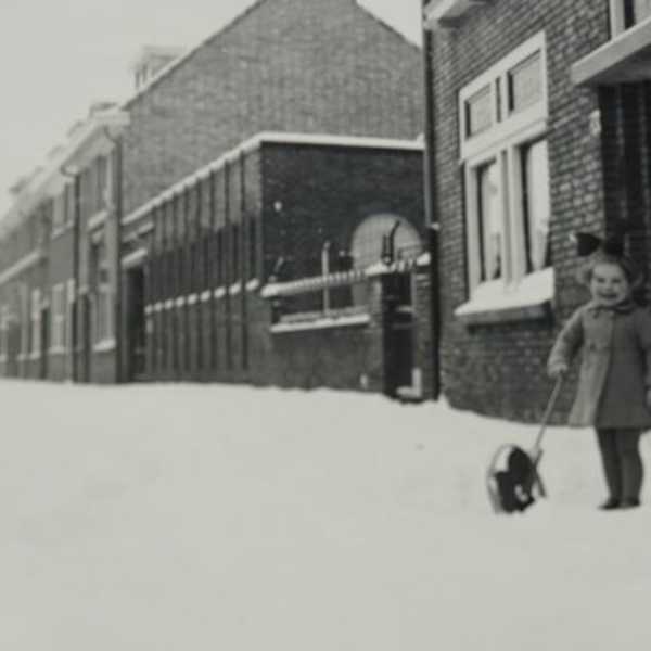 Foto 3 Op de foto rechts naast het schooltje hun woning, Moliusstraat 20 Den Bosch, het kindje is mogelijk een buurtkindje.