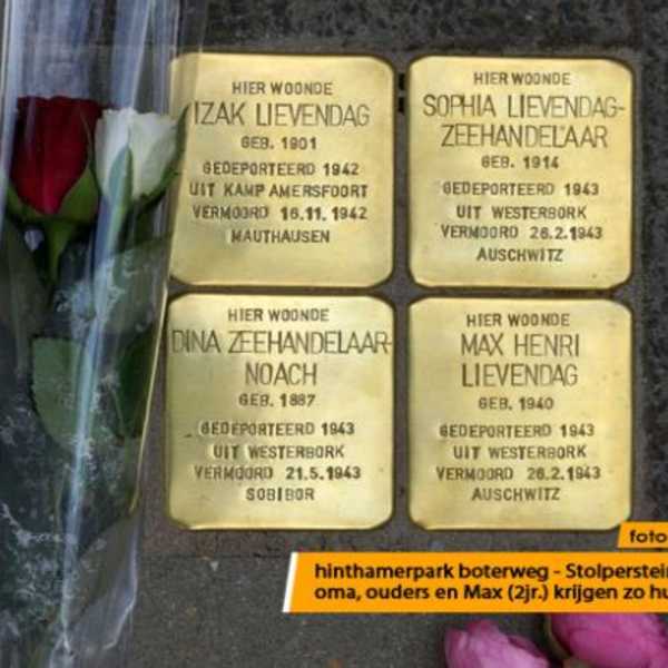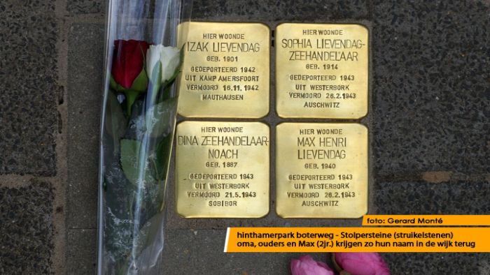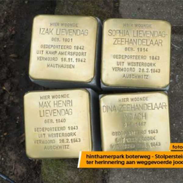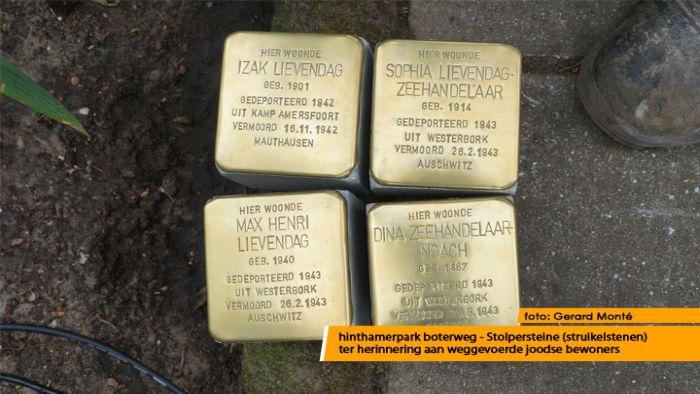 Op 4 mei 2014 werden bij Boterweg 34 vier struikelstenen gelegd.