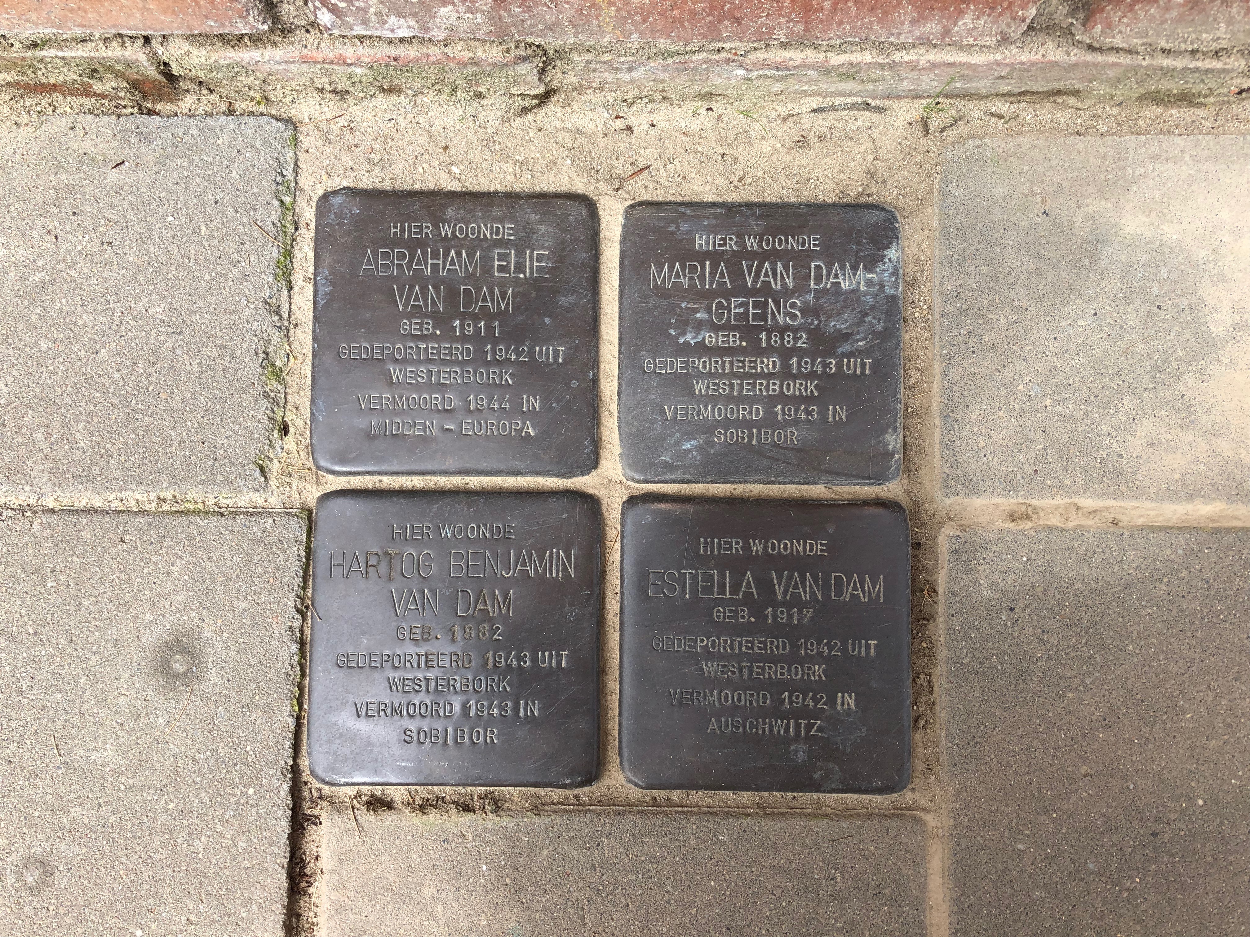 De familie Van Dam vestigde zich in 1921 in Tilburg, aan de Dapperstraat 1, waar ze woonden tot aan hun deportatie. De familie bestaat uit Hartog van Dam, zijn vrouw Maria van Geens en hun twee kinderen: Abraham en Estella. Wegens ziekte van vader krijgen hij en moeder van Dam vrijstelling van deportatie. Estella probeert ook vrijstelling te krijgen om hem te verzorgen, maar dit lukt niet.