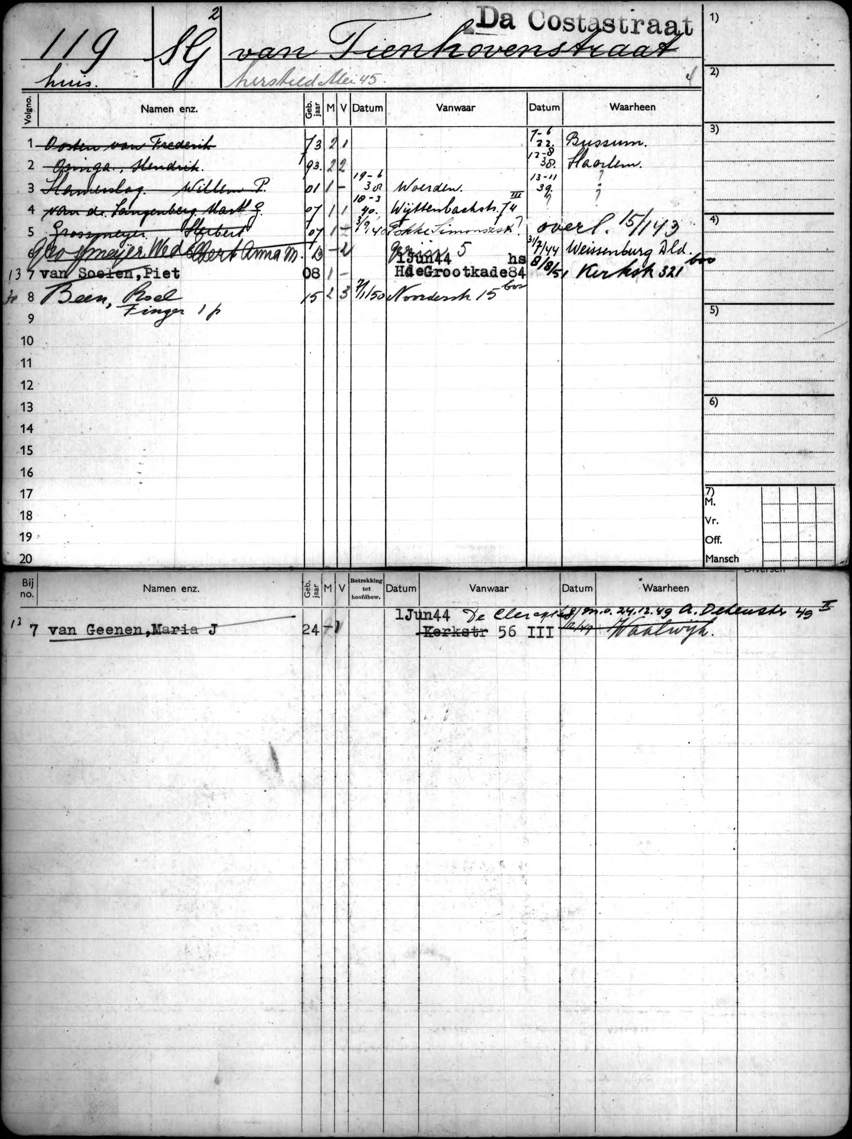 Foto 1: De Woningkaart van Da Costastraat 119 huis (Stadsarchief Gemeente Amsterdam)