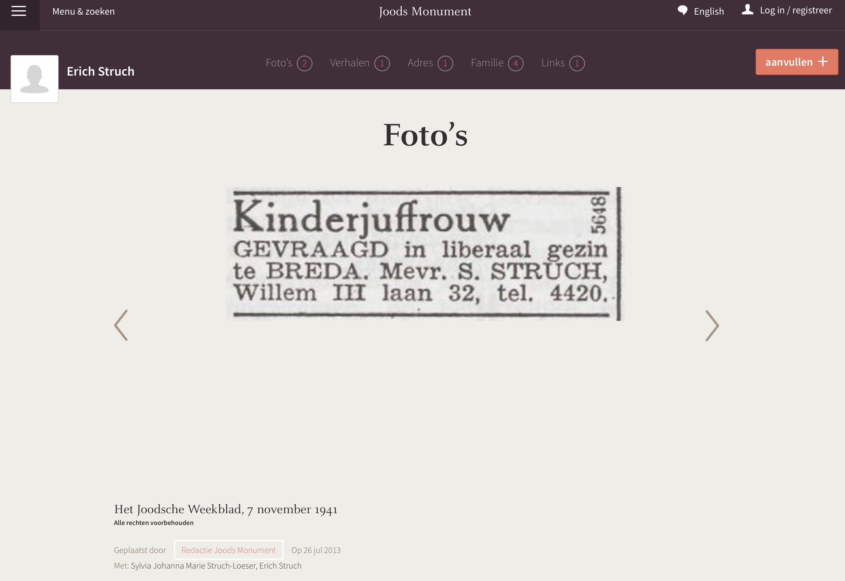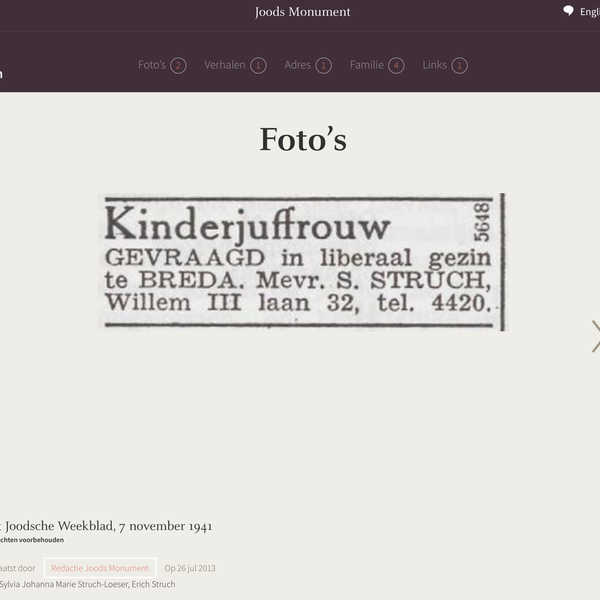 Familie Sylvia en haar foto: https://www.gedenkbuchprojekt.de/html/biographie.php?language=de&file=struch_gustav.html&lastName=Struch&firstName=Gustav