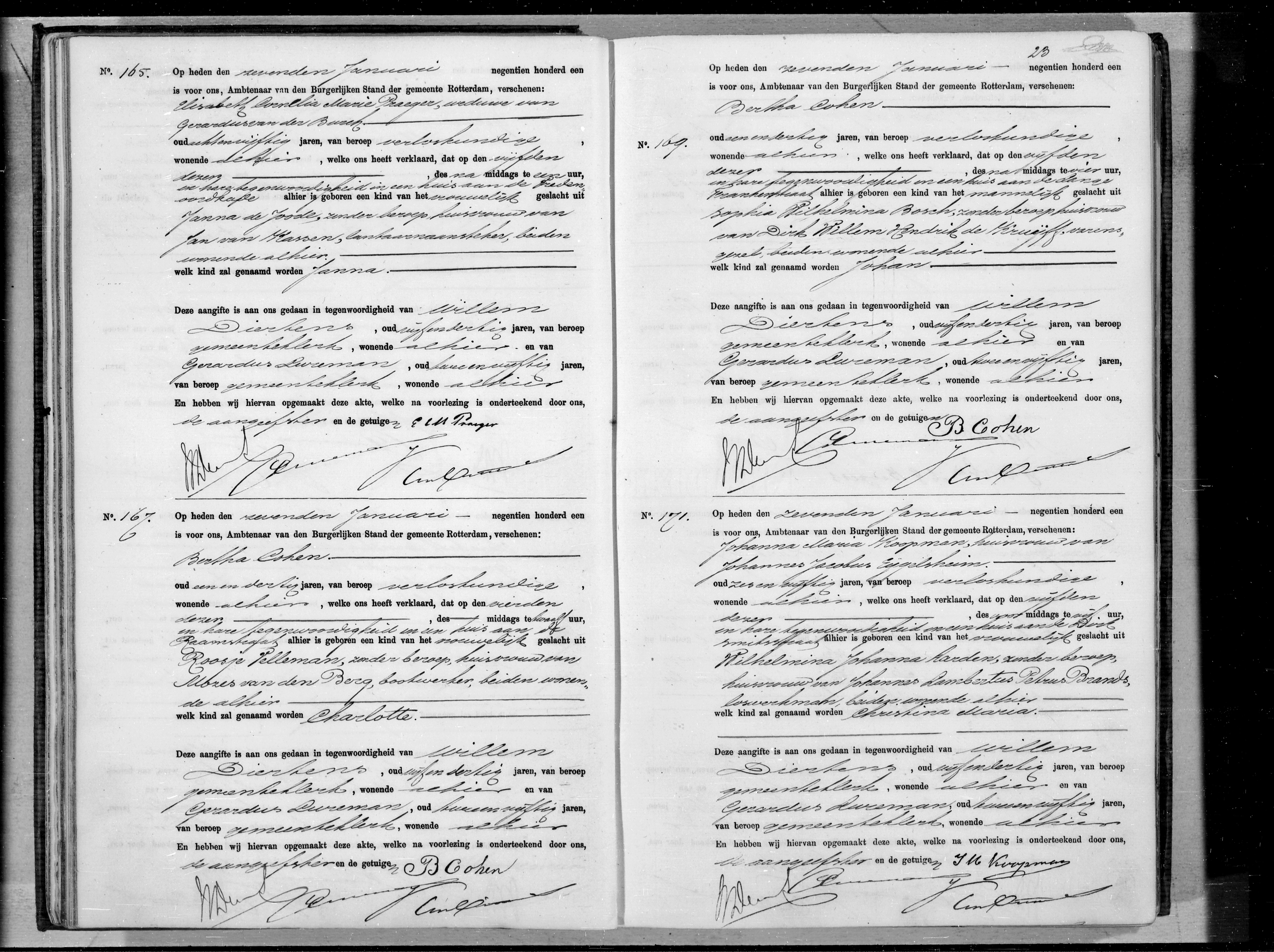 Stadsarchief Rotterdam, Burgerlijke Stand Rotterdam, geboorteakten, archief 999-01, aktenr. 1901.167, geboorte Charlotte.