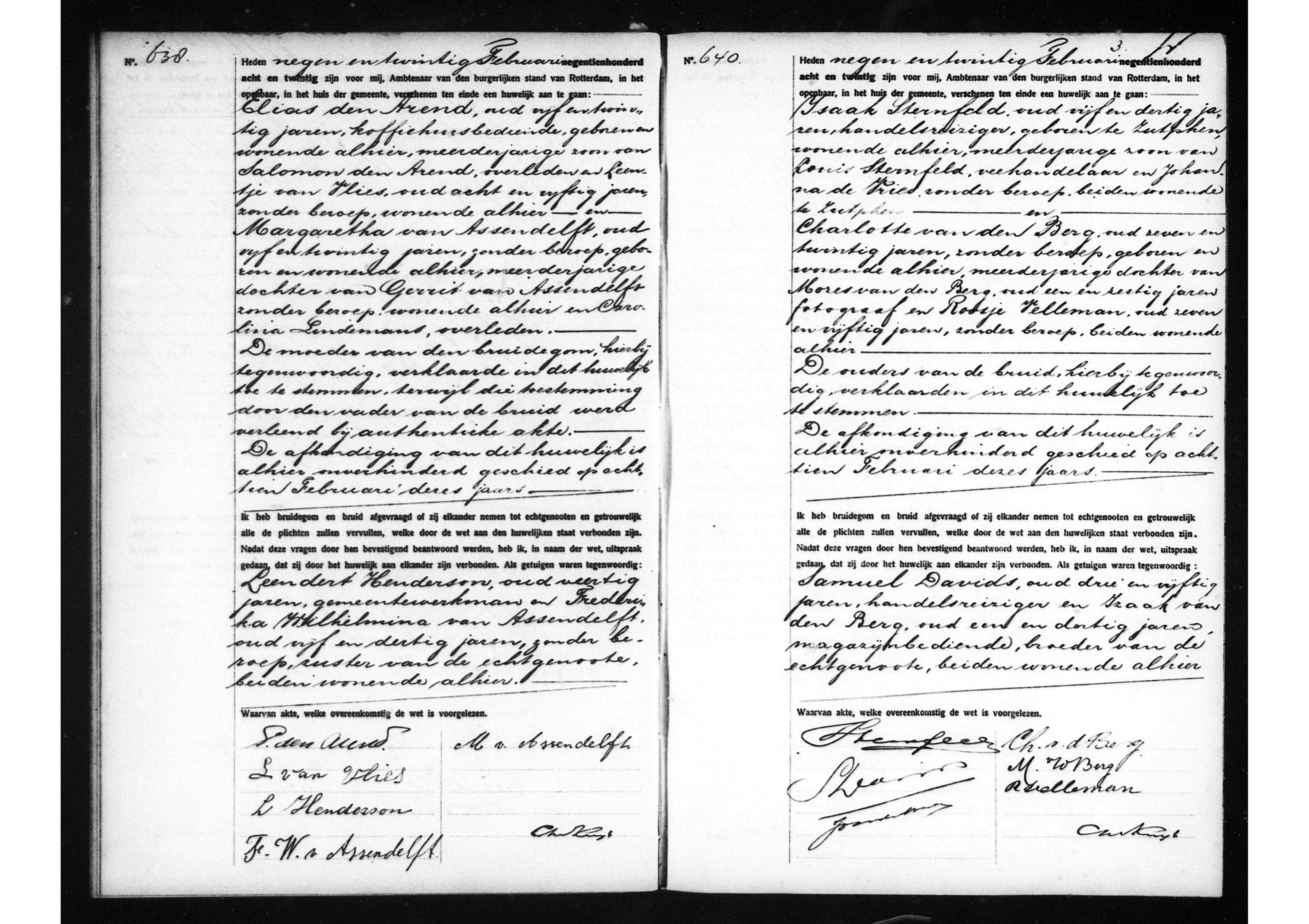Stadsarchief Rotterdam, huwelijksaangifte Charlotte van den Berg en Isaak Sternfeld.