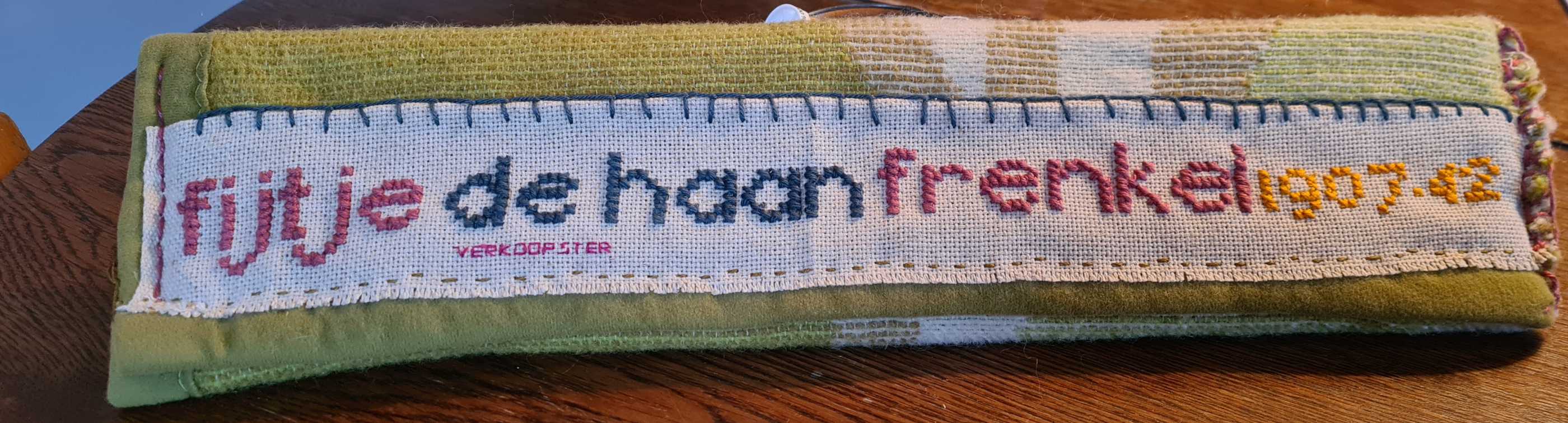 Ik heb voor Fijtje haar naam geborduurd op een deken, een warme deken, als teken voor een welkom thuis in Dordrecht. Een veilige plek onder een deken, teken van geborgenheid en warmte.