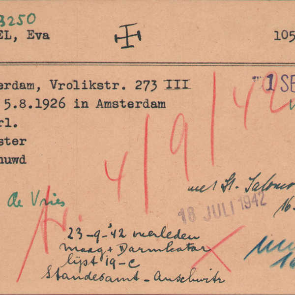 Wat is er gebeurd met dit gezin? Wisten zij van elkaar wat er gebeurde? Alleen van moeder Eva is te achterhalen dat zij in Westerbork is geweest, maar de anderen? Het maakt droevig te lezen dat zij ieder, op verschillende data, zijn omgekomen in Auschwitz of Sobibor. Wat een grote eenzaamheid moet hier achter schuil gaan. Raatje was 41 jaar toen zij op 7 september 1942 in Auschwitz werd vermoord. Dochter Eva was 16, toen zij op 23 september 1942 in Auschwitz bezweek aan maagdarm catarre. Naatje was 39 toen zij op 30 september 1942 overleed in Auschwitz. Moeder Eva was 76 toen zij op 28 mei 1943 in Sobibor werd vermoord. Salomon werd als laatste vermoord in een van de kampen in Midden Europa, op 31 maart 1944, anderhalf jaar na Raatje.