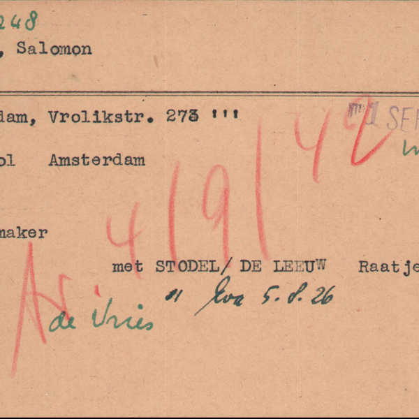 Salomon Stodel en Raatje Stodel-De Leeuw woonden in de Vrolikstraat 273-3. Volgens de cartotheek van de Joodse Raad was Salomon schoenmaker, gespecialiseerd als pantoffelmaker, toen nog een echt ambacht. Salomon en Raatje hadden een dochter, Eva, die naaister was. Ook Naatje de Leeuw woonde op dit adres. Zij was vast familie van Raatje, maar geen zusje. Uit de bronnen blijkt niet welke relatie er was en waarom zij bij het gezin woonde.