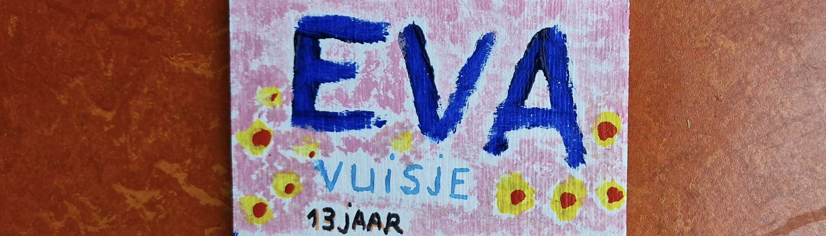 Hallo Eva, ik maak een naambordje om je te herdenken en je symbolisch terug naar huis te brengen, naar de Tollensstraat in Oud West waar je woonde met je zus Klara en broertjes Abraham en Leo, vader en moeder.