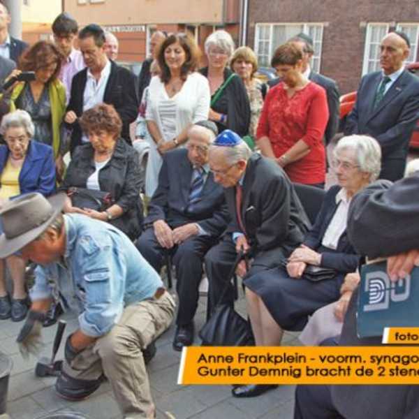 De Duitse kunstenaar en bedenker van de struikelstenen, Gunter Demnig, bracht zelf de stenen aan in het trottoir.