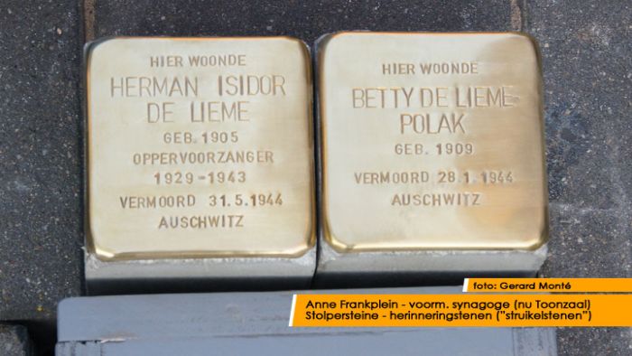 In 2012 zijn bij de voormalige synagoge twee struikelstenen geplaatst voor het echtpaar De Lieme-Polak.