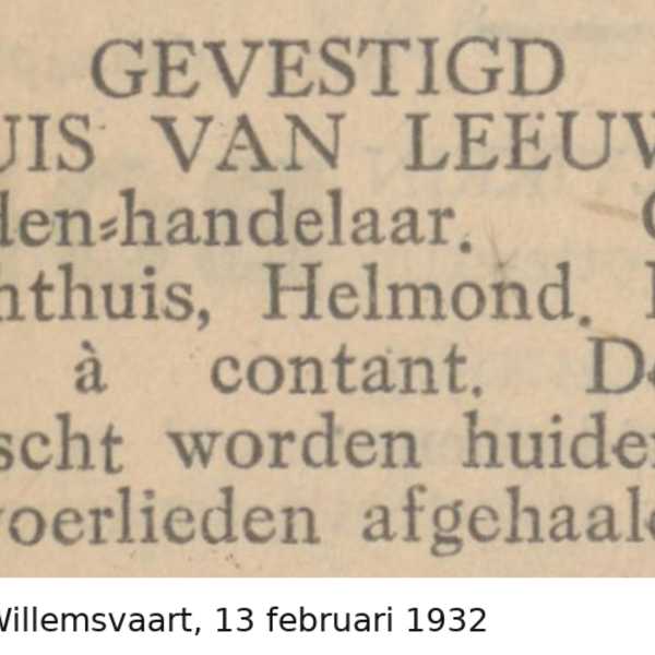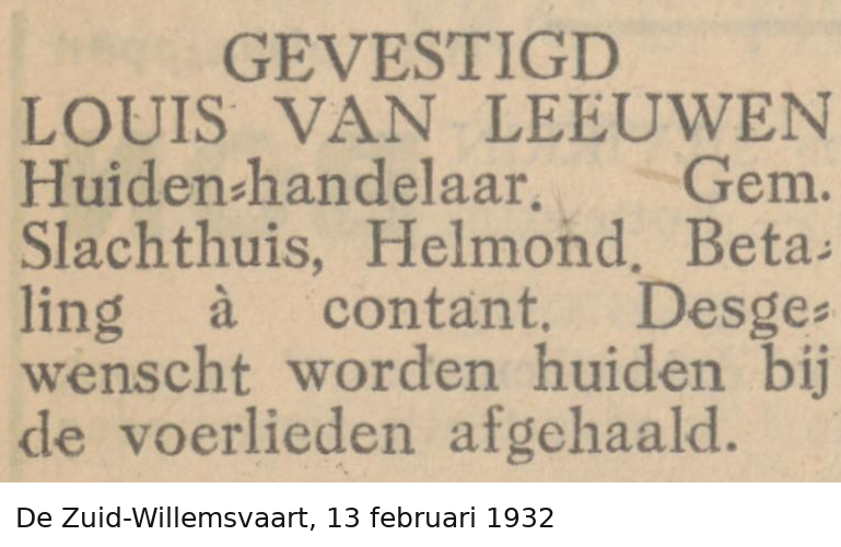 Louis van Leeuwen wordt in 1897 in Eindhoven geboren en groeit in Eindhoven op. Evenals zijn vader gaat hij werken in de huidenhandel en hij begint zijn eigen bedrijf. Op 29-jarige leeftijd trouwt hij met Henriëtte, dochter van slager Alexander Gerson(s), uit Tilburg. Zij gaan in Tilburg wonen, eerst in de Tuinstraat en enkele jaren later in de Gasthuisstraat 41 (sinds 1963 is dit Gasthuisring 47). Zij krijgen een zoon, die ze Alexander (Lex) noemen naar zijn grootvader. Die laatste is inmiddels gestopt met zijn slagerij en komt samen met zijn vrouw Betje inwonen bij het gezin. Betje overlijdt in mei 1941.