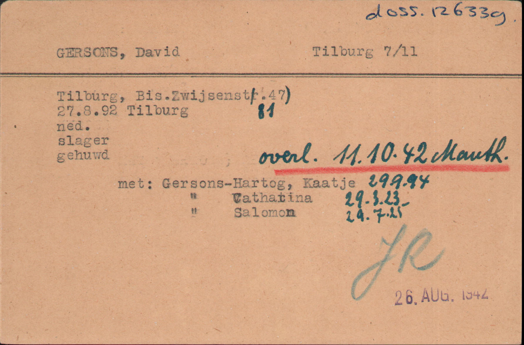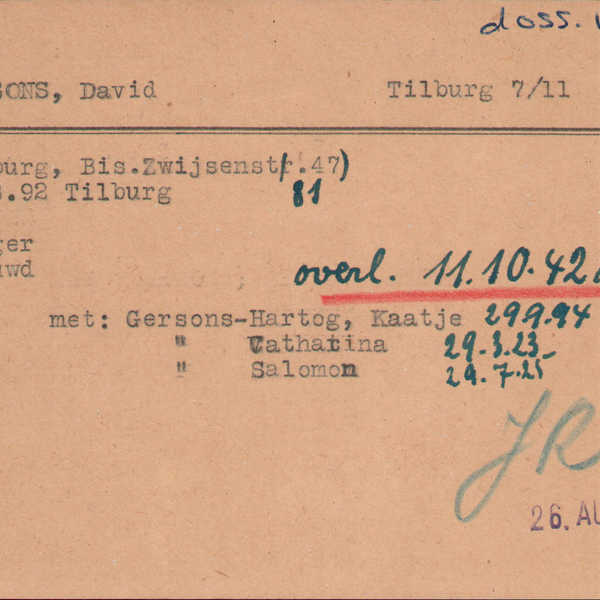 David Gersons trouwde op 14 november 1921 te Tilburg met de Tilburgse Kaatje Hartog. David had een rund-, kalfs en lamsslagerij aan de Bisschop Zwijsenstraat 47. Kaatje en David kregen twee kinderen: Catharina (1923) en Salomon (1925-1944).