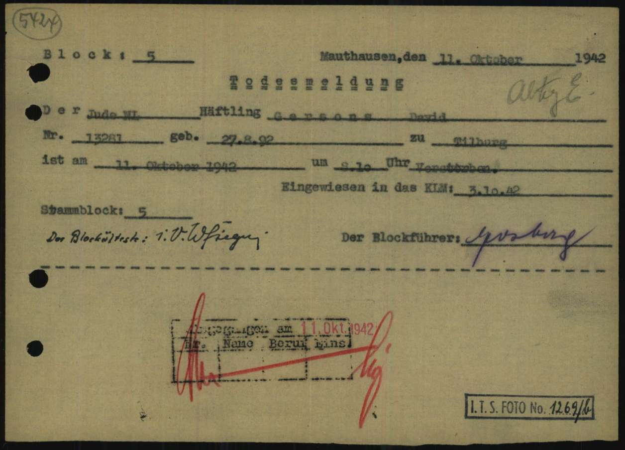 David Gersons moest zich bij de politie melden nadat hij op 18 mei 1942 bekeurd was wegens het overtreden van twee verordeningen. Dit betrof het niet inleveren van metalen en het zonder toestemming verbergen van meubels. Hij bleek een grote koperen ketel in zijn tuin verborgen te hebben. De ketel had hij niet ingeleverd omdat het een erfstuk van zijn ouders was en hij hiervan moeilijk afstand kon doen. Verder had Gersons zijn meubels op 17 maart 1942 tijdelijk opgeslagen bij timmerman Oprinsen. De reden hiervan was dat hij zijn woonkamer aan het opknappen was. Omdat Oprinsen veel werk had, duurden de werkzaamheden wat langer dan gepland. De gehakt- en vleesmachine uit de slagerij had Gersons gedemonteerd en ingepakt in twee kisten en opgeslagen op de zolder bij Lepelaars, Bisschop Zwijsenstraat 27. Deze machines werden niet meer gebruikt omdat hij vanaf 1 mei 1942 geen vlees meer kreeg toegewezen en derhalve de zaak had gesloten. Gersons werd echter niet gearresteerd door de Tilburgse politie omdat hij suikerpatiënt was.