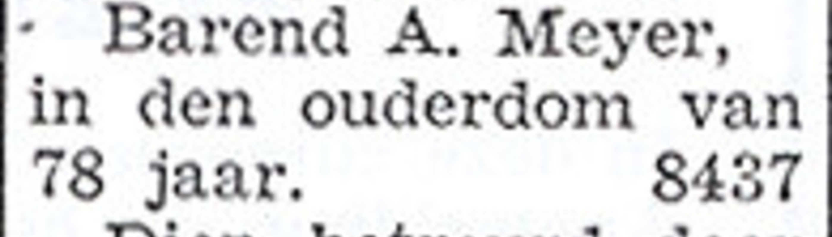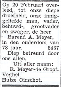 Op 20 febr. 1943 stierf Barend Meijer een natuurlijke dood in zijn woning aan de NCB laan in Veghel.