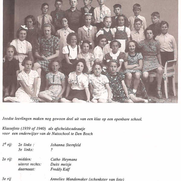 Marijke Bus en Davy Velleman, Het gedroomde leven, abrupt voorbij. Een kroniek van het joods lagere schooltje en het Joodsch Lyceum. ’s-Hertogenbosch, Bus en Velleman, 1995, p. 19.