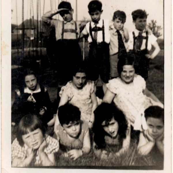 Johanna (‘Hanne’) Sternfeld in gezelschap van Netty, Betty, Freddy en Loutje van Zwanenbergh, Hans en Betty van Straten, Loek en Bep Rosenbaum, Eddy en Eefke de Winter. Privécollectie van de familie Stronkhorst.