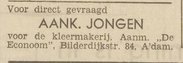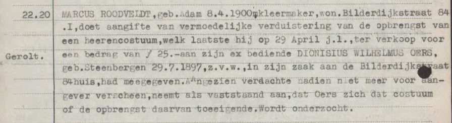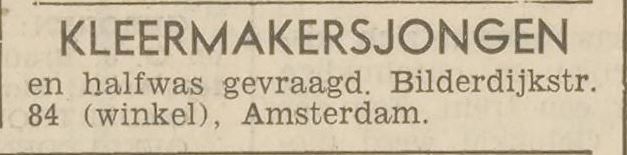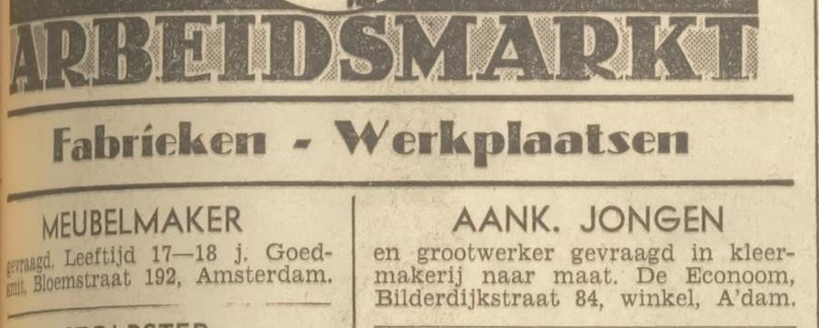 In 1938 verhuisde het gezin naar de begane grond van Bilderdijkstraat nummer 84. Op ditzelfde adres was ook de kleermakerij annex herenmodezaak van Marc en Lena gevestigd, dus de Roodveldtjes zullen achter de winkel hebben gewoond. In verschillende kranten uit die tijd zijn nog personeelsadvertenties voor de kleermakerij te vinden. 'De Econoom' heette de zaak, en er werden herenkostuums op maat gemaakt.