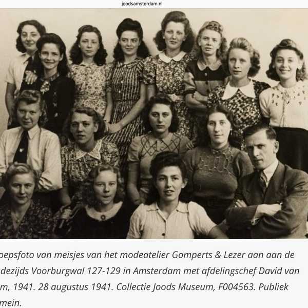 Henri Gomperts runde samen met zijn zwager Meijer Lezer een handel in dames mode-artikelen op de Oudezijds Voorburgwal 129 met een bijbehorende confectiefabriek in de Foeliestraat 14-20. Tijdens de oorlogsjaren werd de onderneming onder een Verwalter geplaatst, een zaakgelastigde van de bezetter (bron: Joodsamsterdam).