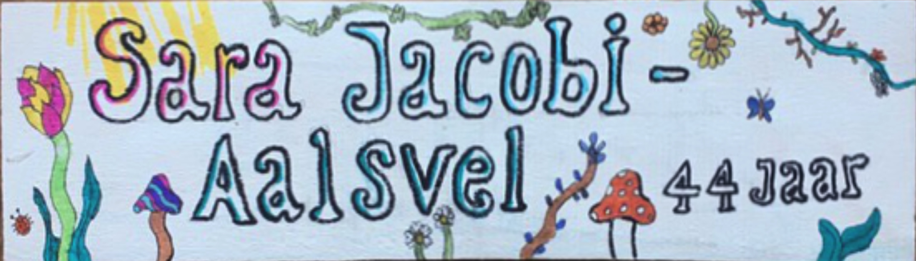 Sara Jacobi heeft in de Tilanusstraat 67huis gewoond. Het staat tegenover ons eigen huis. Samen met haar man Max Jacobi, haar zoon Maurits, haar vader Abraham Aalsvel en haar zuster Jetta Aalsvel waren zij onze overburen als wij in de oorlogsjaren in ons huis hadden geleefd.