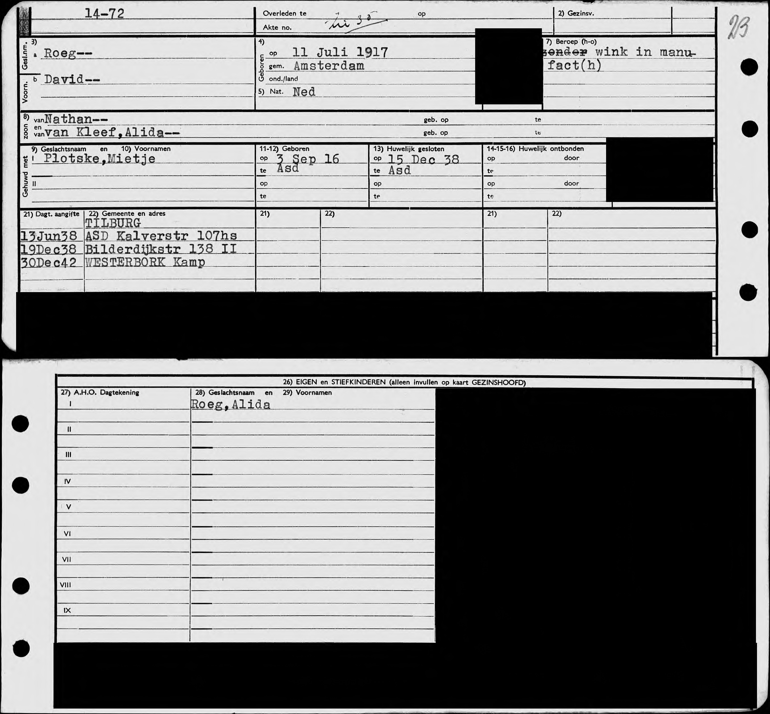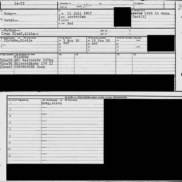 Foto 2: David, Mietje en Alida in het Bevolkingsregister (Stadsarchief Gemeente Amsterdam)