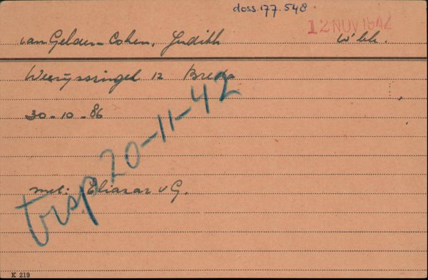 Op 20 november 1942 wordt Judith zelf samen met haar man gedeporteerd. Op 23 november worden zij beiden vermoord in Auschwitz.