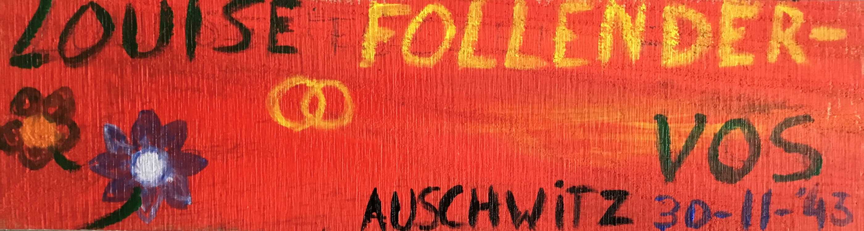 Louise Follender-Vos werd op 3 april 1910 in Amsterdam geboren. Met haar man, Götz Follender, en dochtertje Marina kwam zij in mei 1938 naar Vught waar zij aan de Marggraffstraat 1b woonden. Haar man Götz werd in augustus 1942 tewerkgesteld in het Rijkswerkkamp Dalfsen. In oktober 1942 werd Louise vanuit Vught naar Kamp Westerbork afgevoerd in het kader van "gezinshereniging". Bij het ophalen van de gezinsleden liet de Vughtse politieman M.W. Leemhuis dochtertje Marina via de tuin ontsnappen. Louise werd vanuit Westerbork afgevoerd naar Auschwitz waar zij op 30 november 1943 omkwam. Dochtertje Marina overleefde de oorlog.