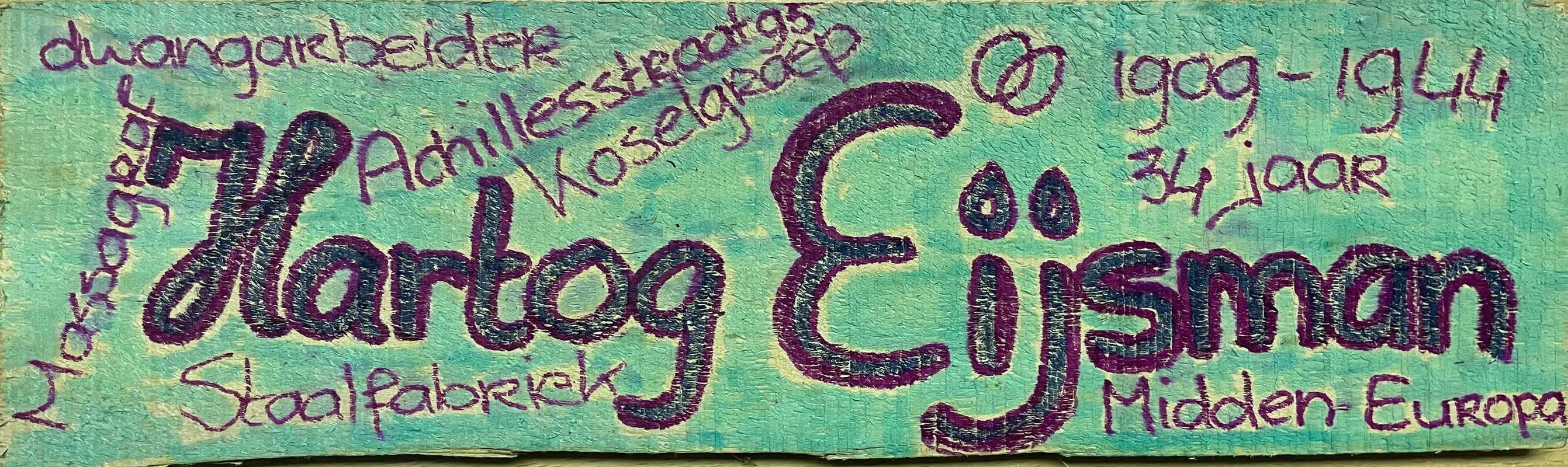 Op 18 oktober 1989 is daar in aanwezigheid van een grote Nederlandse delegatie een gedenkteken ingewijd met de namen van 43 uit Nederland gedeporteerde joden. Ook de naam van Hartog Eijsman staat erbij.