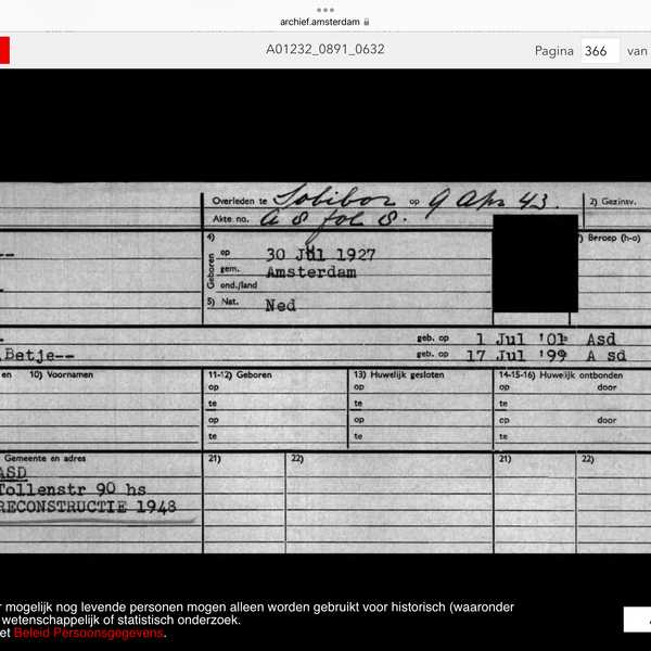 Vermoord: Sobibor, 9 april 1943