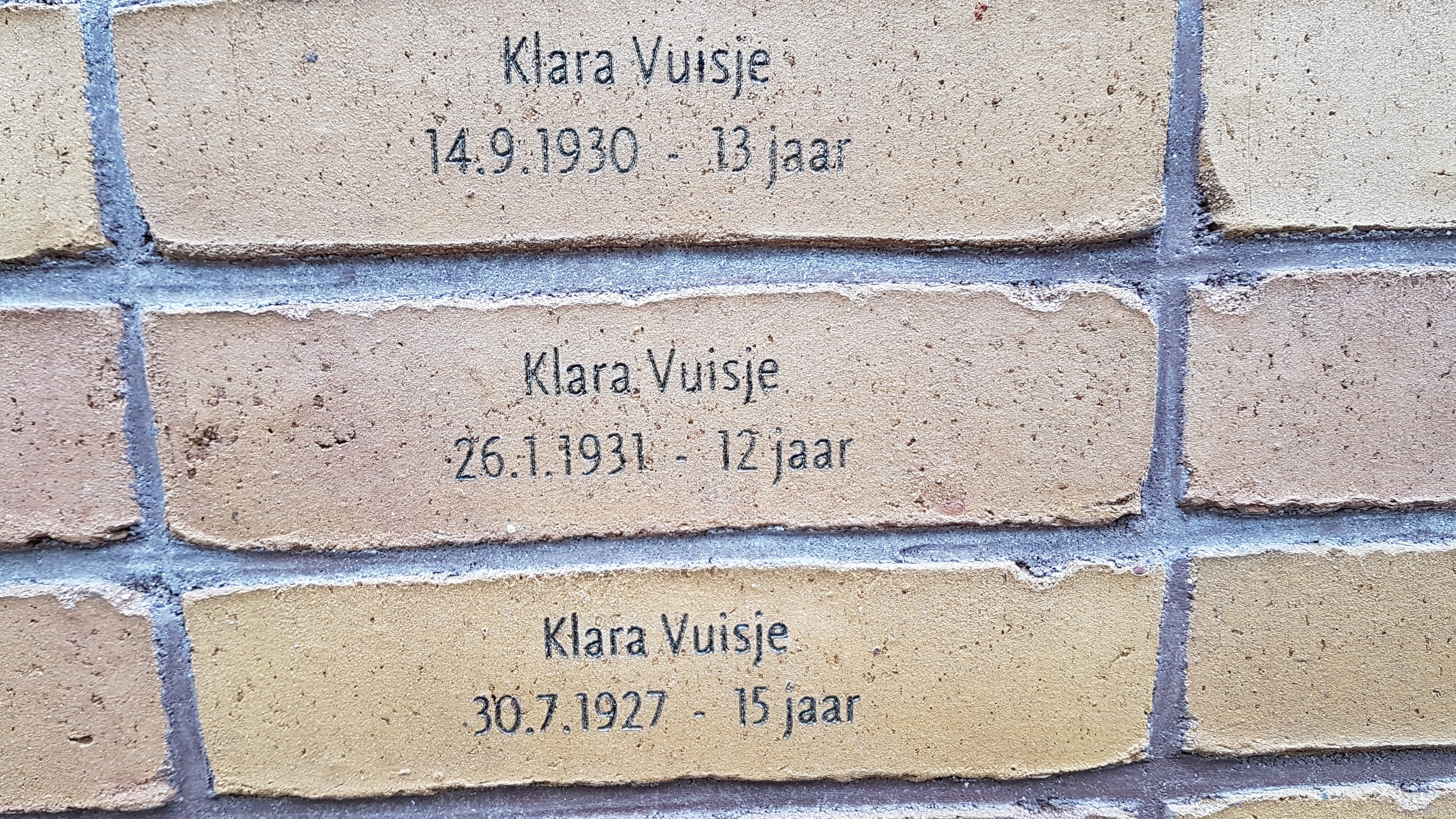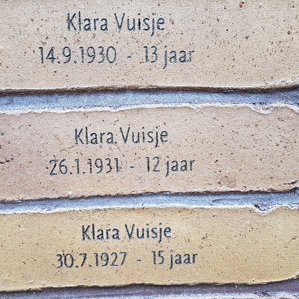 Allen zijn terug te vinden op de muur van het Nationaal Holocaust Namenmonument in Amsterdam. De naam Klara Vuisje komt zelfs drie maal voor. De andere Klara’s werden 12 en 13 jaar.