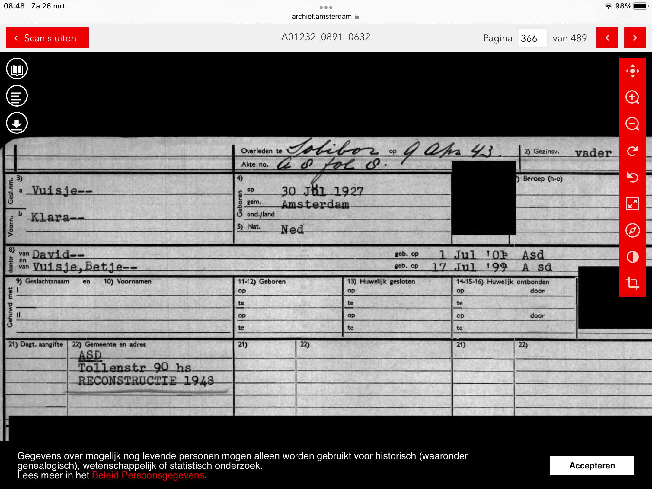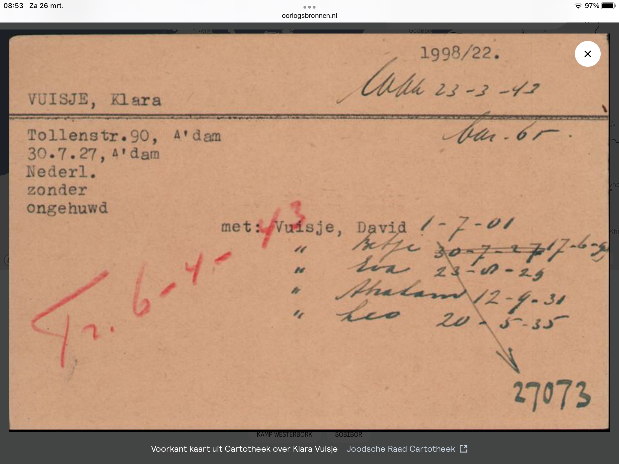 Klara Vuisje: 30 juli 1927 - 9 april 1943